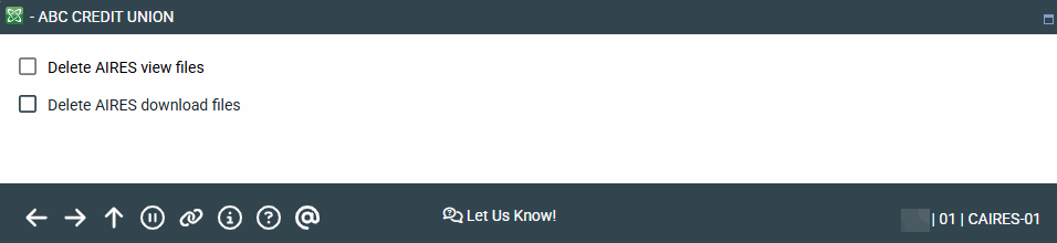The first option deletes the AIRESSH and AIRESLN files formatted for viewing in the core, along with their respective summaries. The second option deletes the AIRESSHDN and AIRESLNDN files formatted for downloading to a PC.