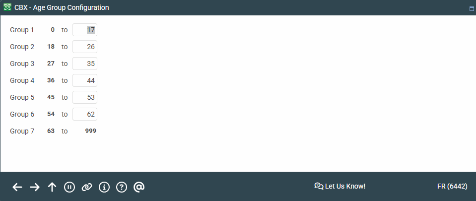 Use this screen to change the age ranges to be used when analyzing members by age group.