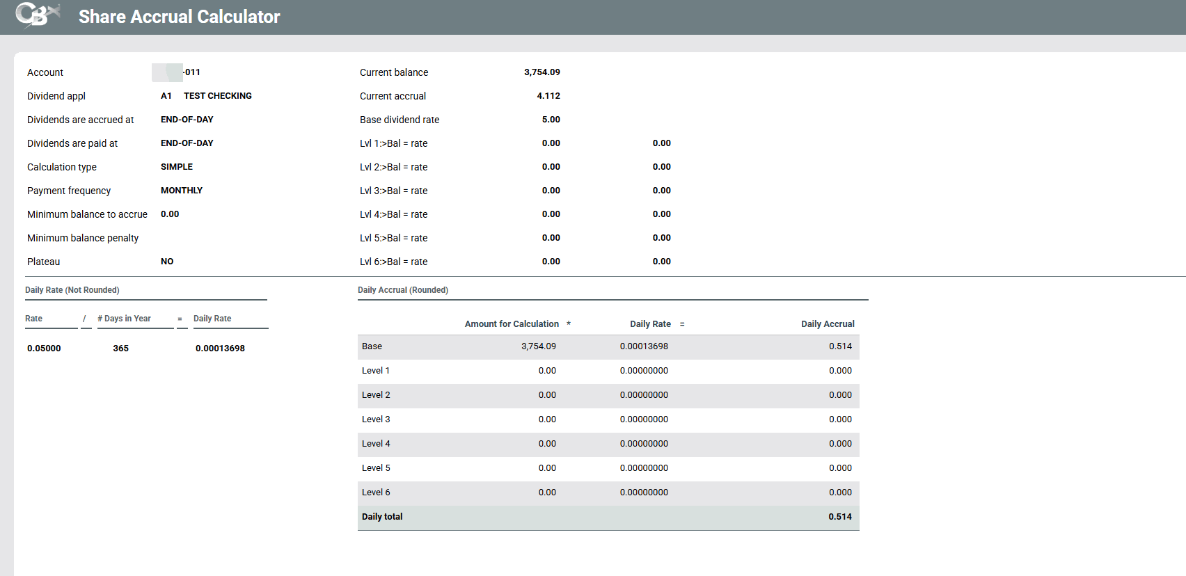This screen will appear when you select Calculation Details on the initial Share Accrual Calculator screen.
