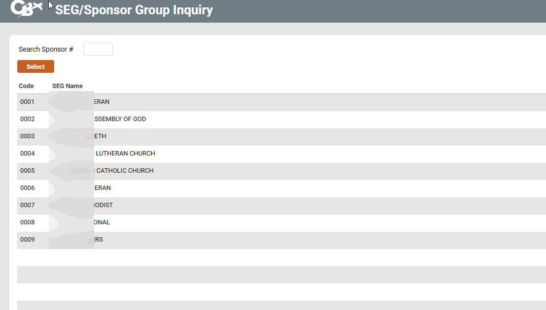 | Screen Title: | SEG/Sponsor Group Inquiry | |
