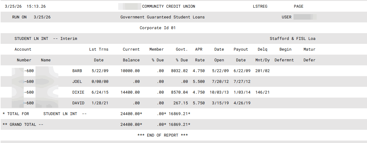LSTREG-01 Student Loan Register 886 LSTREG |