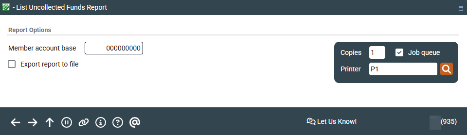 Access this screen by selecting Tool #878: Uncollected Funds Report.