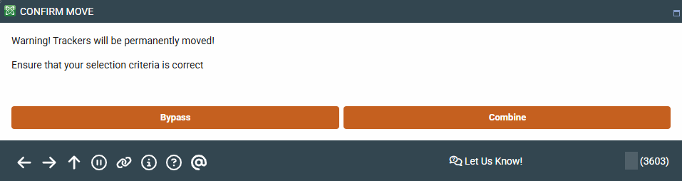 NOTE: With either selection, you can select a custom name for your new combined Tracker. If you do not enter a name in this field, then the name of the Tracker that was created first is used. This name is also called a "Reference" on various screens.