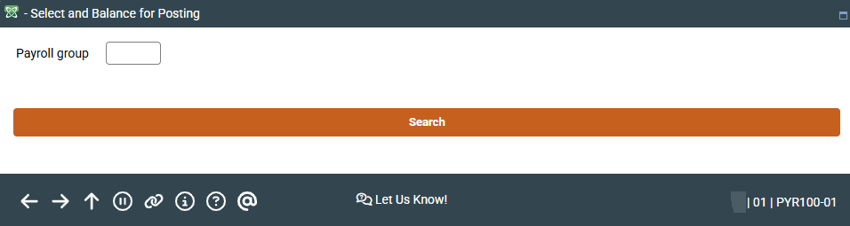 Enter the Payroll Group ID and use Enter to proceed to the second screen.