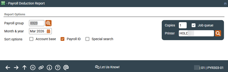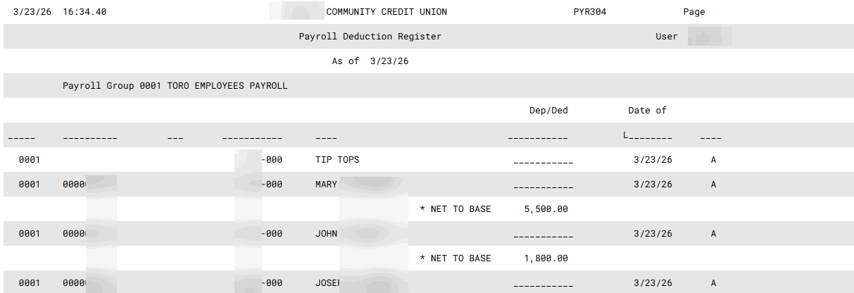 PYR303-01 Payroll Deduction Report 1363 PYR304 |