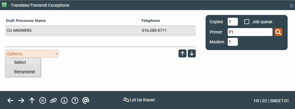 Retransmit should only be used in rare cases when an error message occurs during transmission. This is primarily used by self-processing credit unions. Contact a CU*BASE representative for assistance.