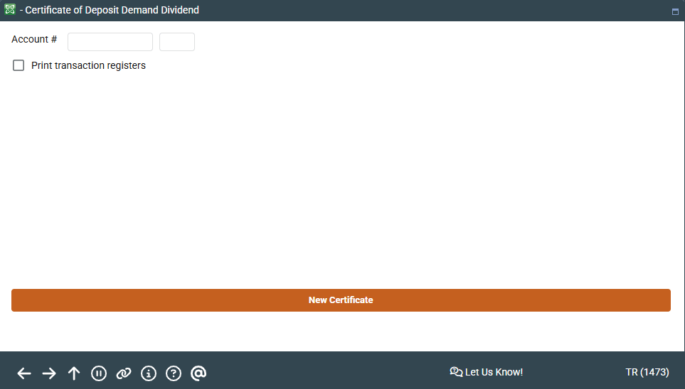 TCDDTB-01 Certificate of Deposit Demand Dividend 1473 TCDDTB |