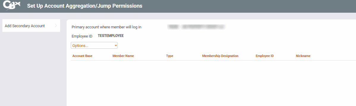 Selecting this button will bring you to this screen. This is where you will add secondary accounts to a primary business membership. Once configured, the secondary accounts will appear in the BizLink 247 account aggregation module. |