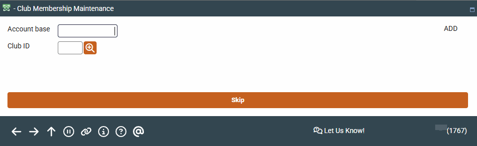 This screen is used to enroll a member into a marketing club. Enter the account base and choose a Club ID (Click the lookup button