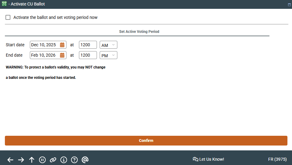 If you do not want to activate the ballot at this time, do not check the checkbox, but simply use Confirm.