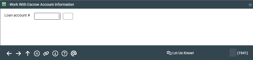 Use this screen to update an existing escrow disbursement record, or to open a new escrow share account and link it to a loan. On this screen enter the loan account number.