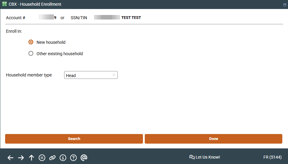 This window is used to enroll a member or a non-member into a household in the CBXHousehold Database.