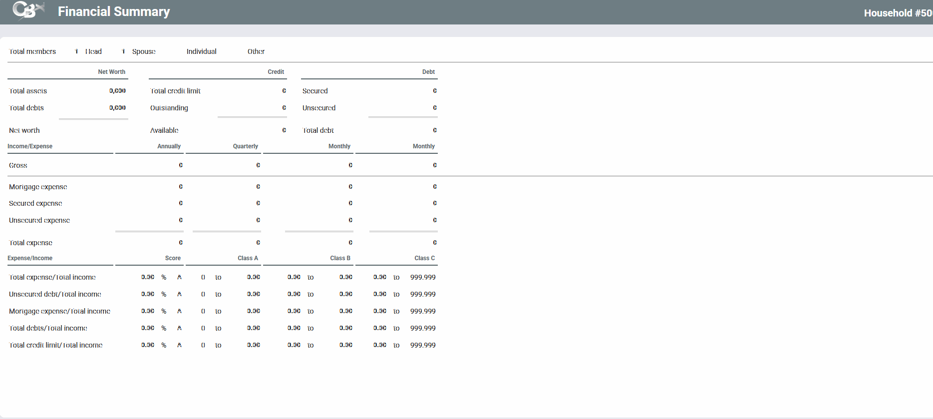 Access this screen by clicking the lookup next to Financial Summary on the Household Analysis screen.