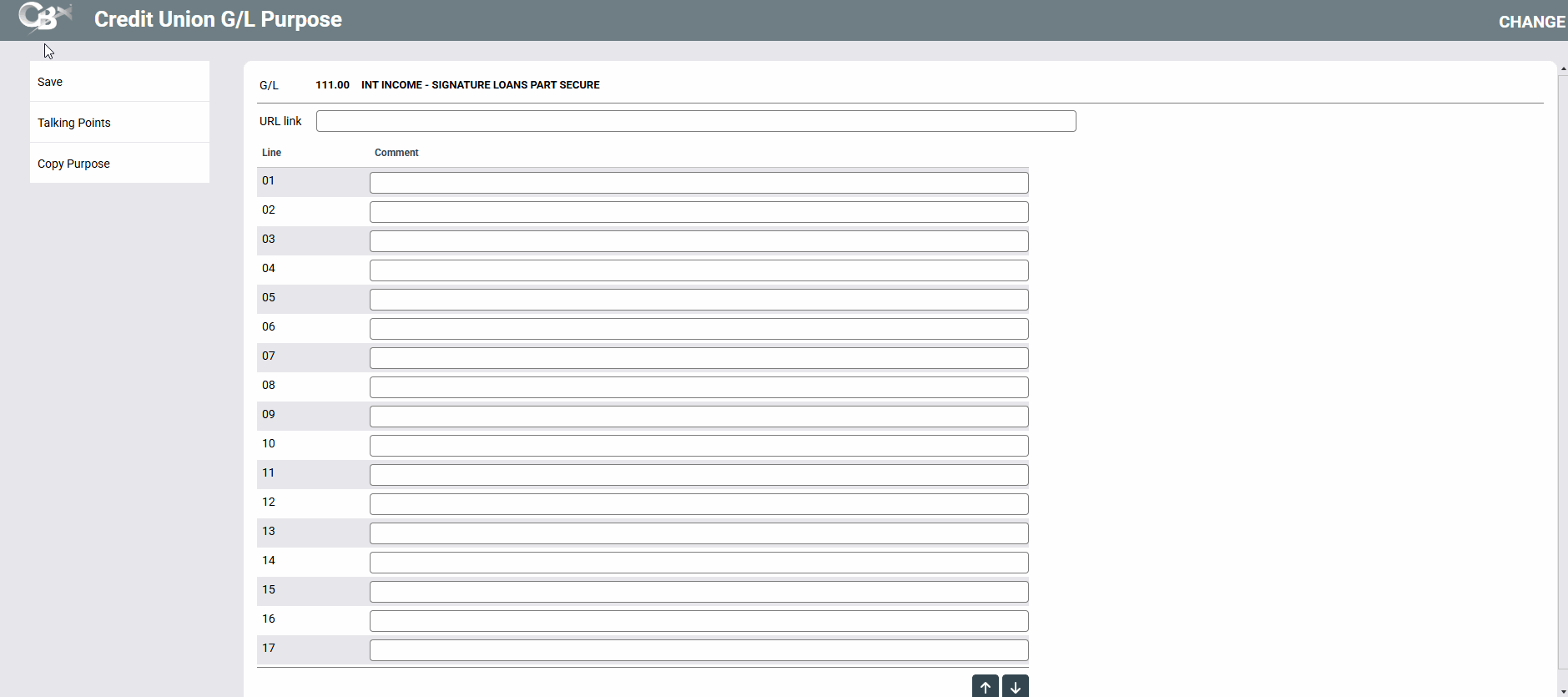This screen is used to record text that describes the purpose of this G/L account, or procedures for managing the account, to be viewed from various CU*BASE screens where general ledger account numbers are displayed or entered. A link to an Intranet page or website page can also be entered.