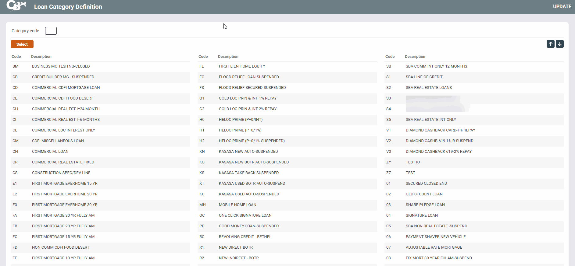 Access this screen by selecting Tool #458 Loan Category Configuration (maintenance) and Tool #953 View Loan Category Configuration (inquiry).