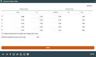 Loan Category Configuration: Payment Change Table