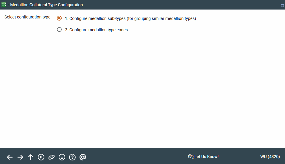 Select Configure medallion type codes to advance to the Medallion Type Codes configuration screen.
