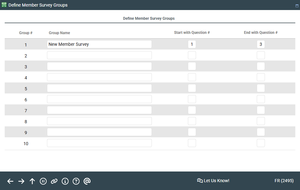 Access this screen by selecting "Survey Groups on the entry survey configuration screen.