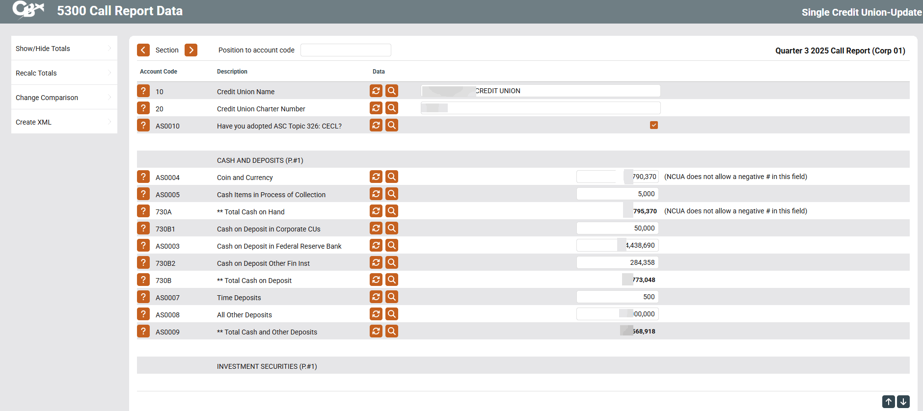 Do not misunderstand: This doesn’t mean you can’t have G/L accounts that sometimes have a positive and sometimes a negative balance. That happens all over the place in many different types of G/L accounts, and both CU*BASE 5300 Call Report tool calculations and the NCUA software will handle them just fine. And it doesn’t mean you can’t keep your classifications the same as they are now if you prefer another method; you will just need to remove the auto-pop routine on those few Account Codes and include that in your manual review of your Call Report data.