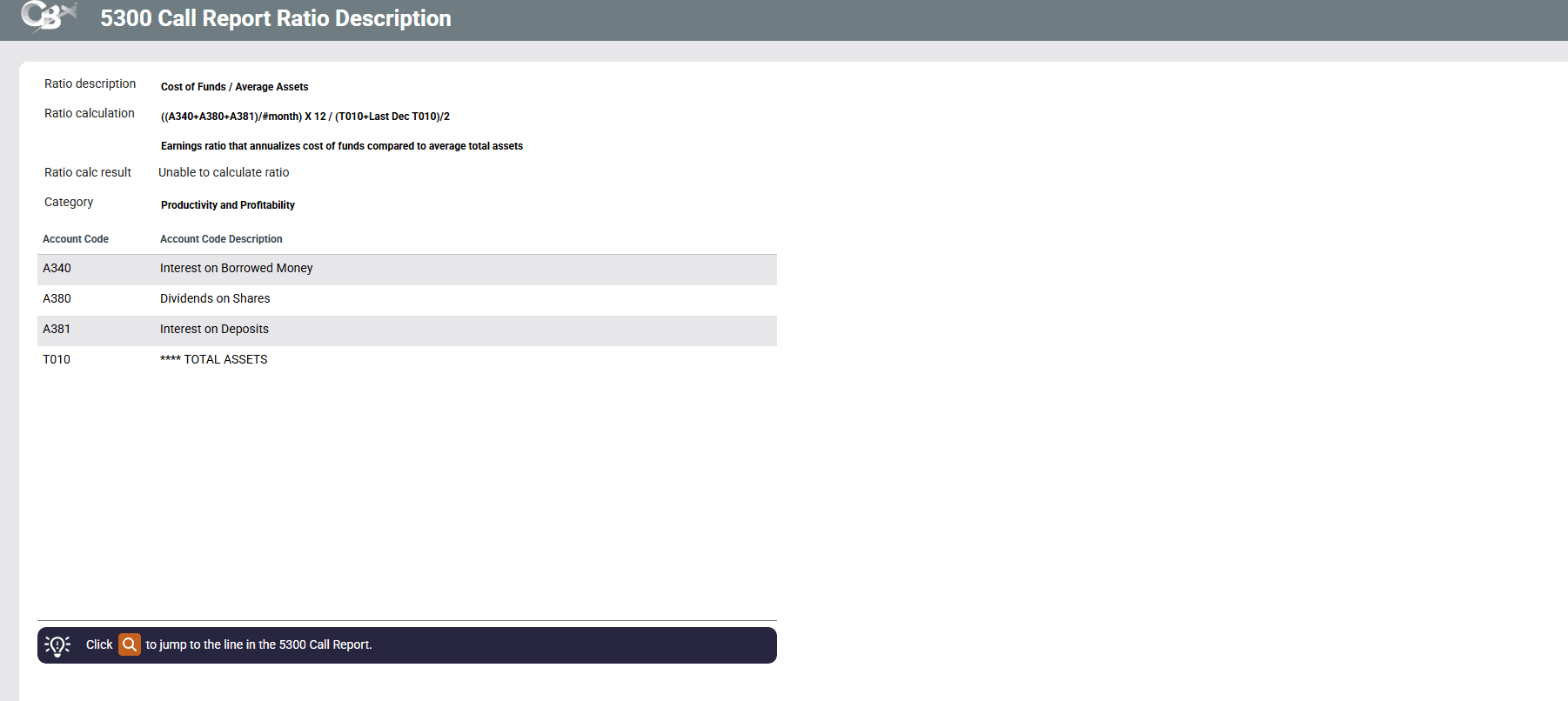 5300 Call Report Ratio Description
