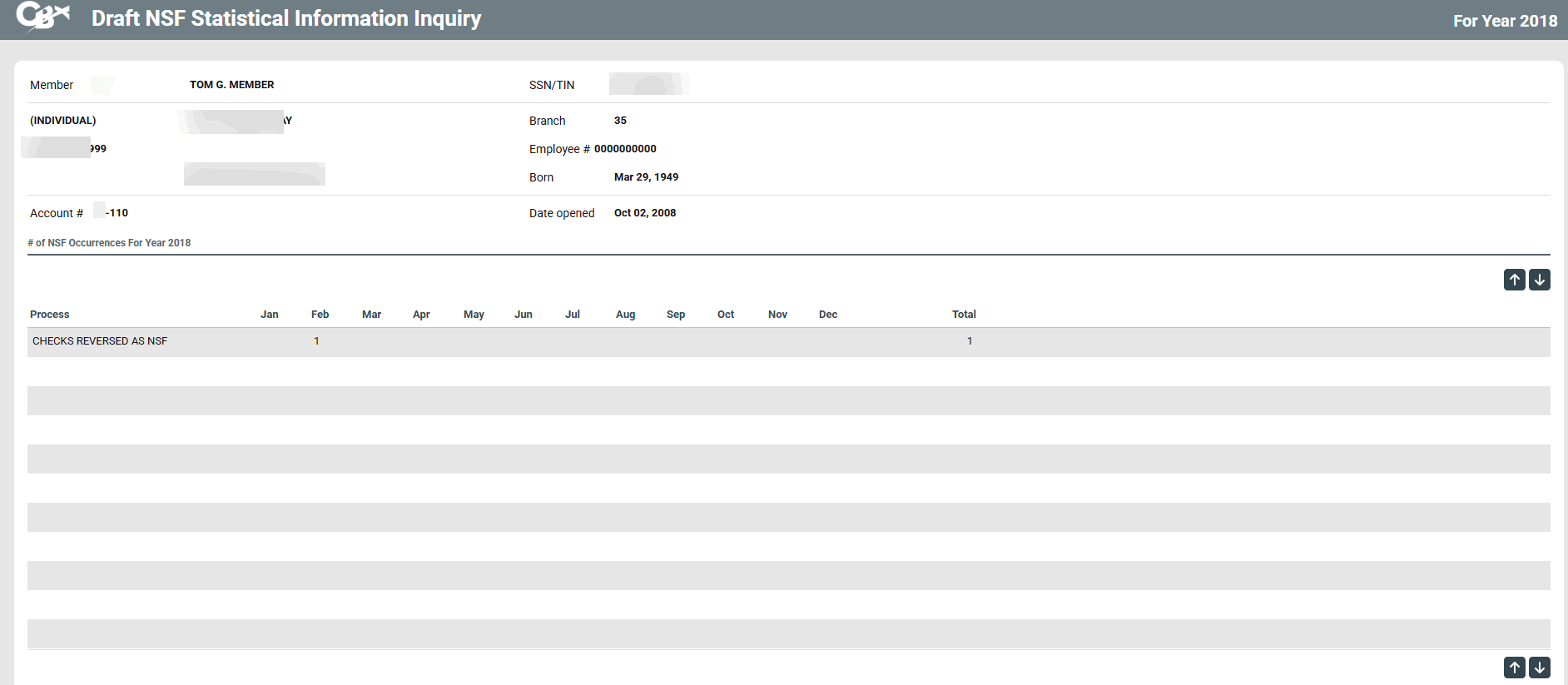 For now this will show NSF Checks Returns and NSF Checks Not Returned (through the Automated Non-Returns feature). In the future it will also include ACH and debit card items.