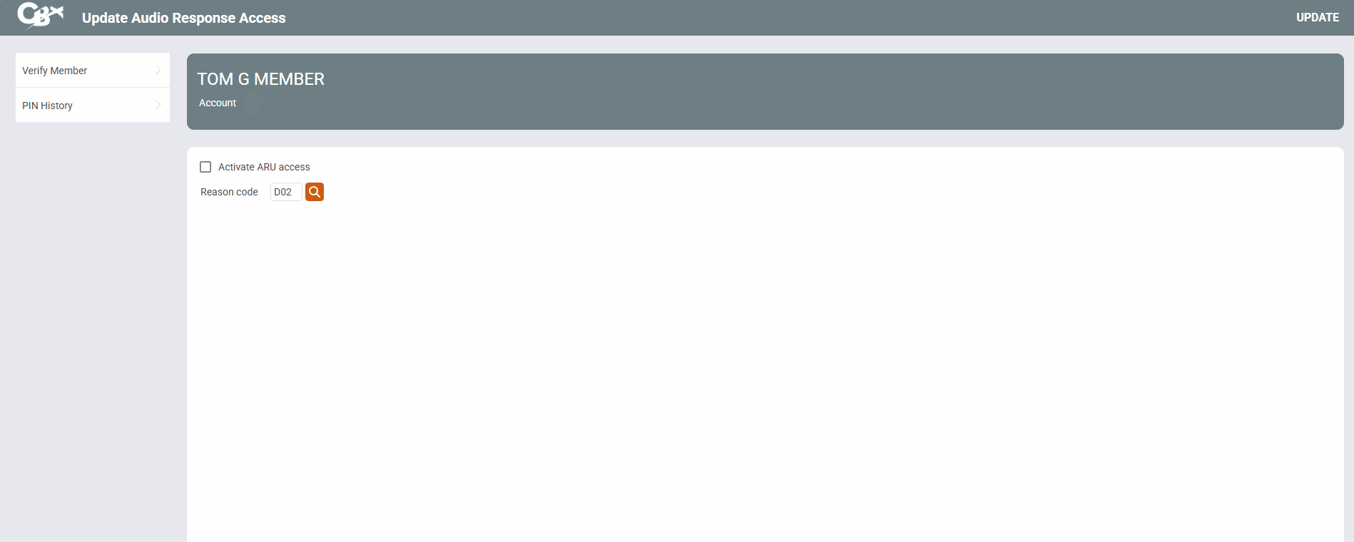 CAUTION: Changes made via this screen provide access to CU*Talk. Follow credit union policies and procedures. Use Verify Member to access information on the member on the core. Use PIN History to review the PIN changes on this account.