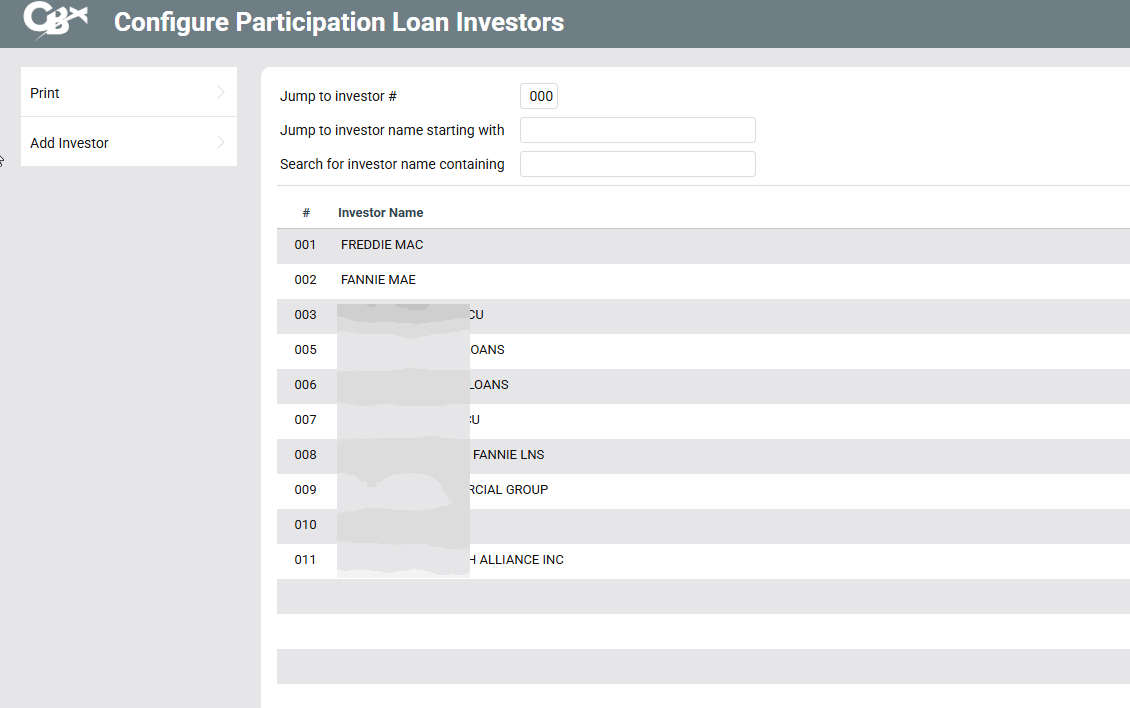 Access this screen by selecting Tool #265: Configure Partic. Loan Investor Info.