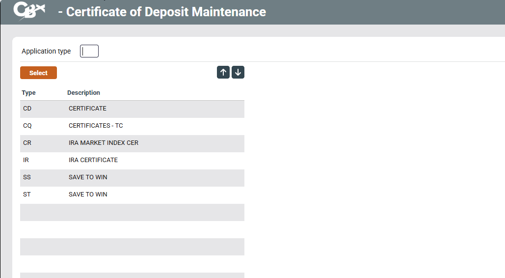 CD Application codes set the default values and suffix ranges for a credit union's certificate portfolio. These help to segregate certificates by dividend calculation and payment parameters as well as AIRES and other general settings. This separation can also be useful when analyzing certificate accounts on various reports and inquiries.
