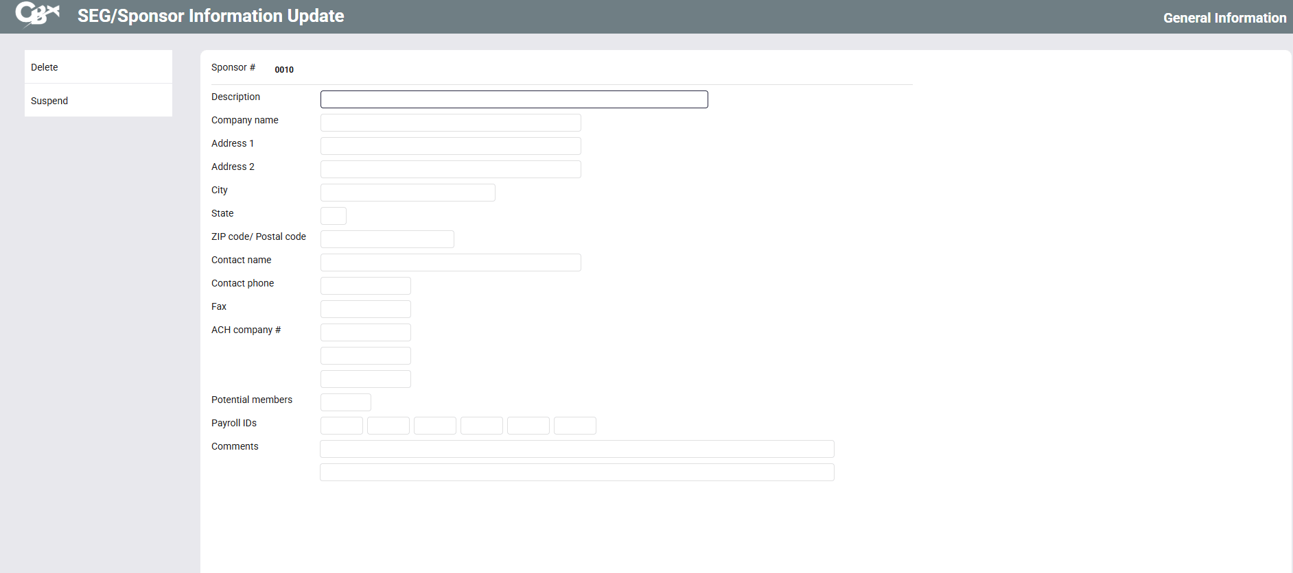 | Screen Title: | SEG/Sponsor Information Update | |