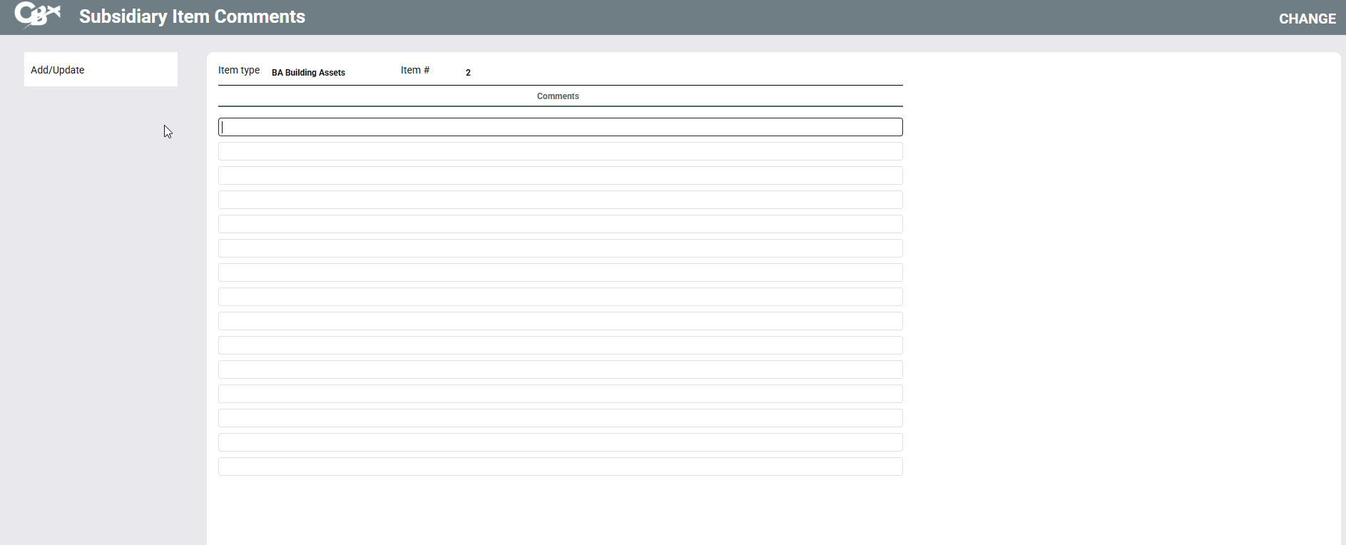 Enter your comments about the fixed asset subsidiary. If you save a comment on this screen, an exclamation point will appear on the Comment button on the previous screen.
