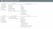 This screen appears when the "Reporting Criteria" is checked on the main statement processing configuration screen and Enter is used.