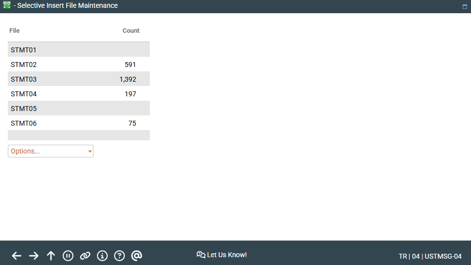 USTMSG-04 Selective Insert File Maintenance 2799 |