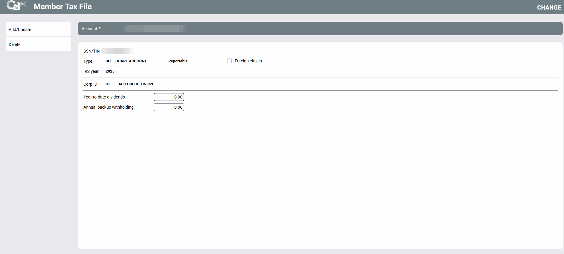 This second screen shows specific tax information for the account and year selected. Notice that the figures shown here will match those shown on the Tax File Inquiry by Account inquiry, for this specific account number.