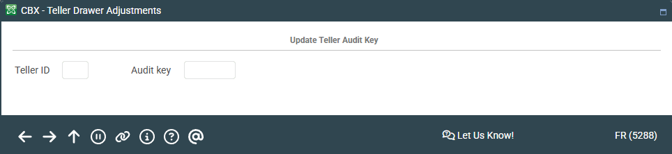 Access this screen by selecting Tool #120: Adjust Teller Drawer/Audit Keys.