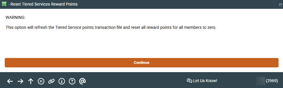 Access this screen by selecting Reset All Member Reward Points on the Main Tiered Service Configuration screen.