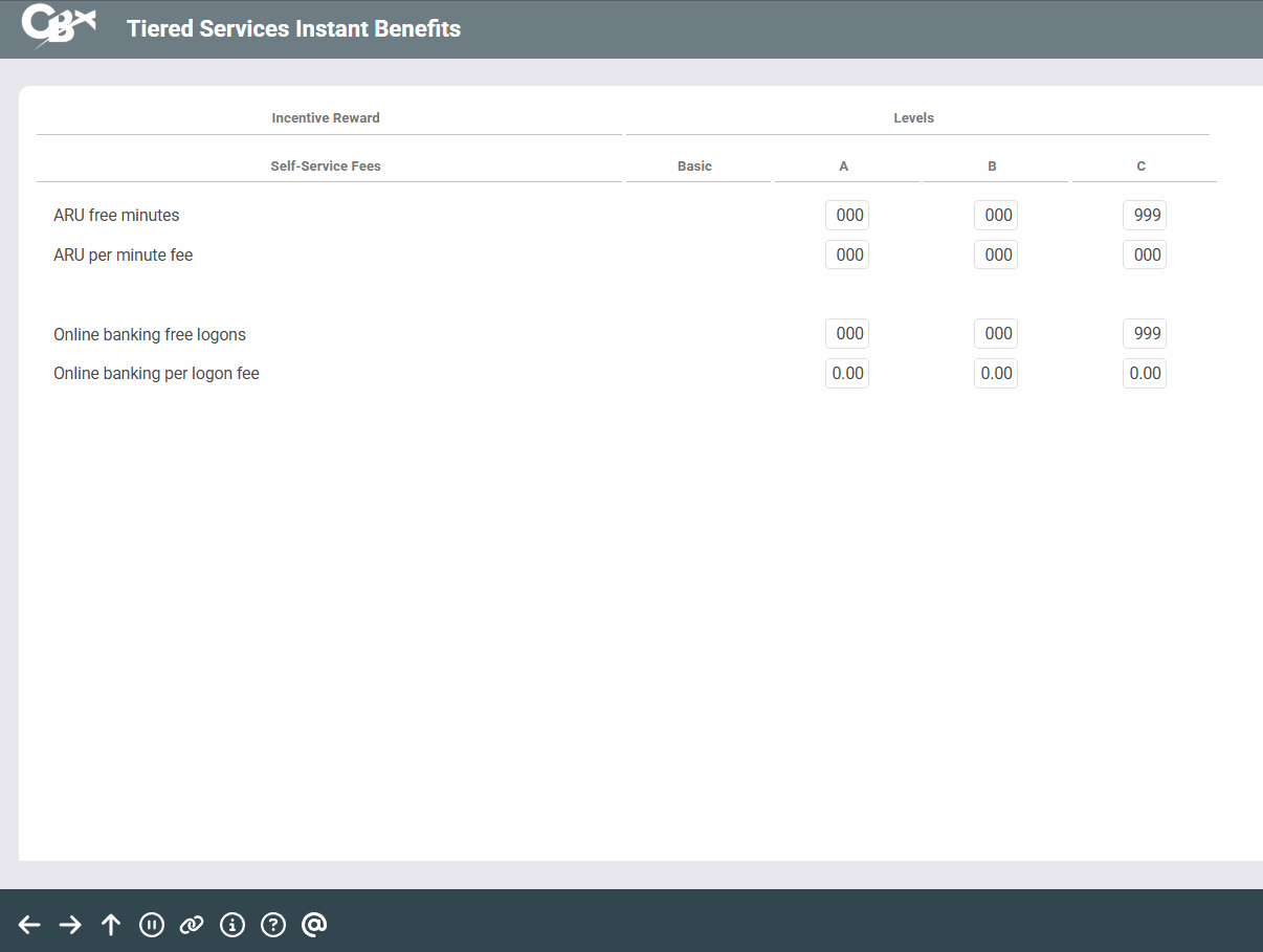 Refer to the Tiered Service Levels Implementation Guide for details on using this screen and important tips on setting up an effective Tiered Services program for your credit union.