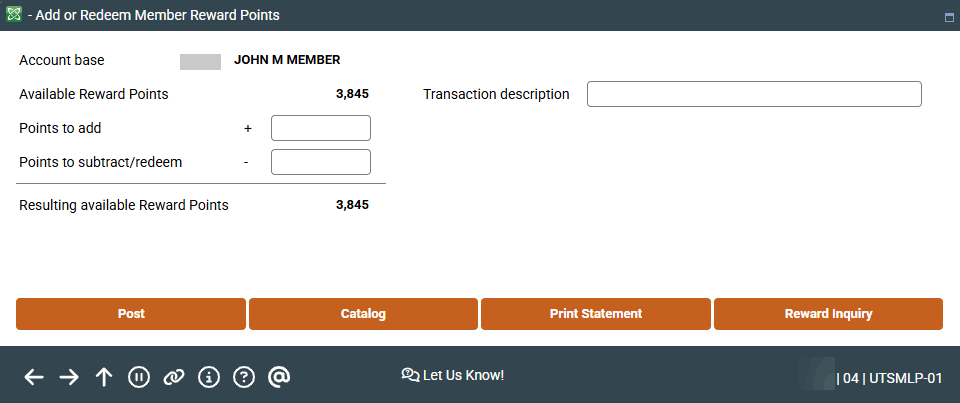 UTSMLP-01 Add or Redeem Member Reward Points 2984 |