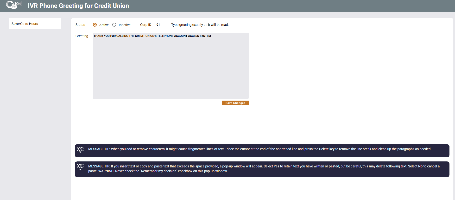 This message is Corp ID sensitive when the credit union is a multi-corp credit union.